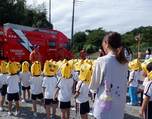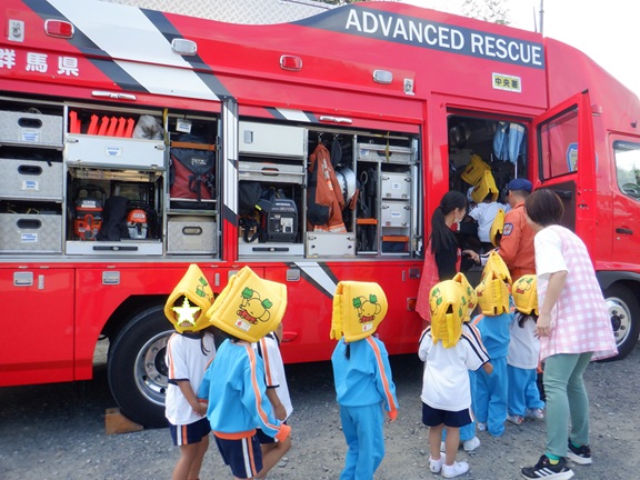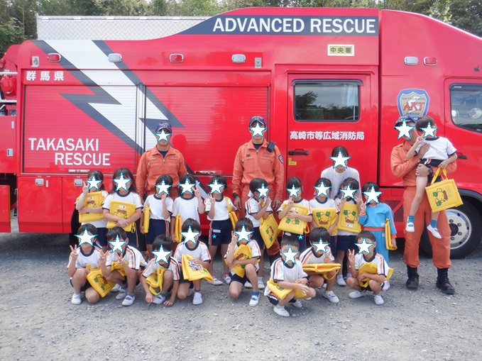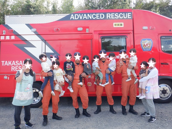 最後には消防士の方と消防車を背景に写真を撮ることができとても嬉しそうな子ども達でした♪