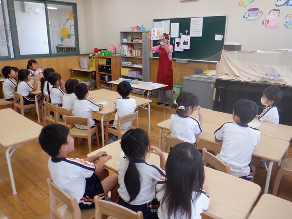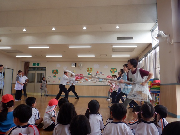 国際警備の方に来て頂き、不審者対応の避難訓練をしました。【いかのおすし】について分かりやすく教えて頂き、子どもたちもしっかりと覚えることができたと思います。職員もさすまた対応の仕方を教えて頂きました。今回学んだことをしっかりと頭に入れ、何かあった時にすぐに対応できるようにしたいと思います。